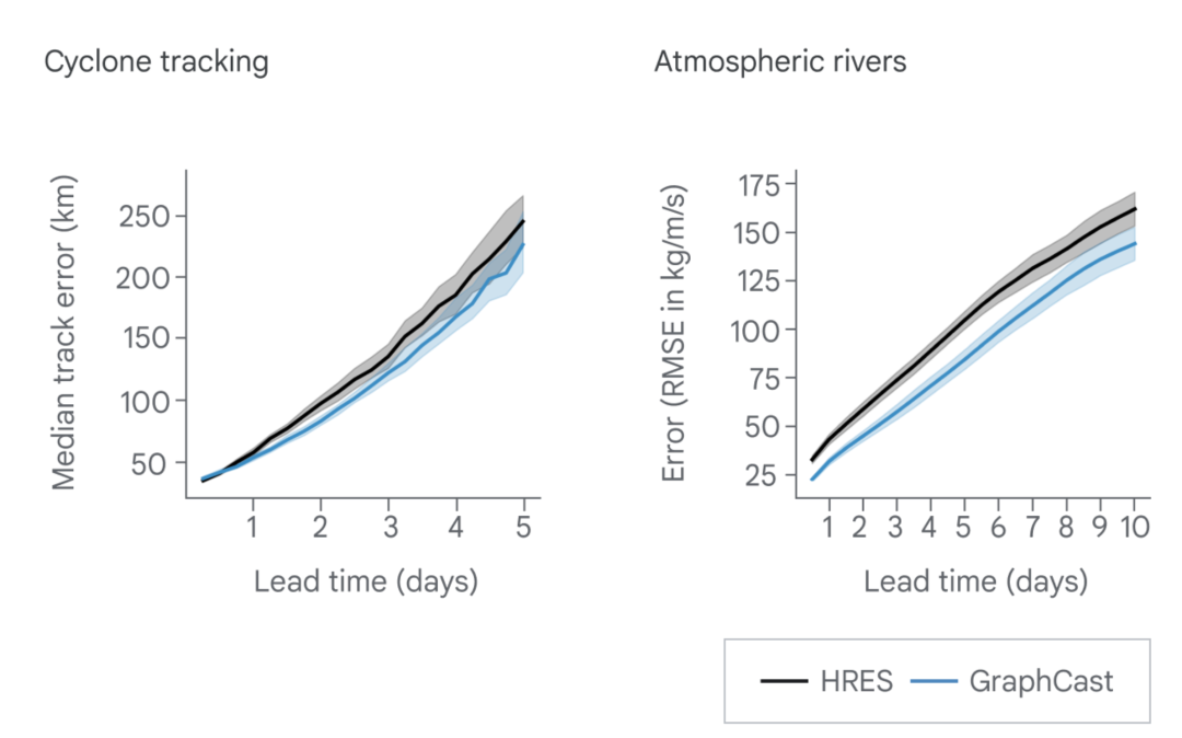 Graphcast模型和傳統HRES模型的效果對比