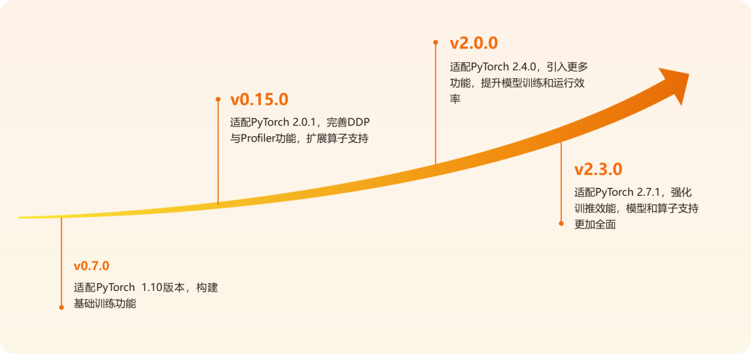 適配PyTorch 2.7.1,大幅增強(qiáng)算子和模型支持,強(qiáng)化torch compile、自定義算子擴(kuò)展與分布式訓(xùn)練(FSDP/FSDP2)等功能,兼容PyTorch 2.5/2.6。