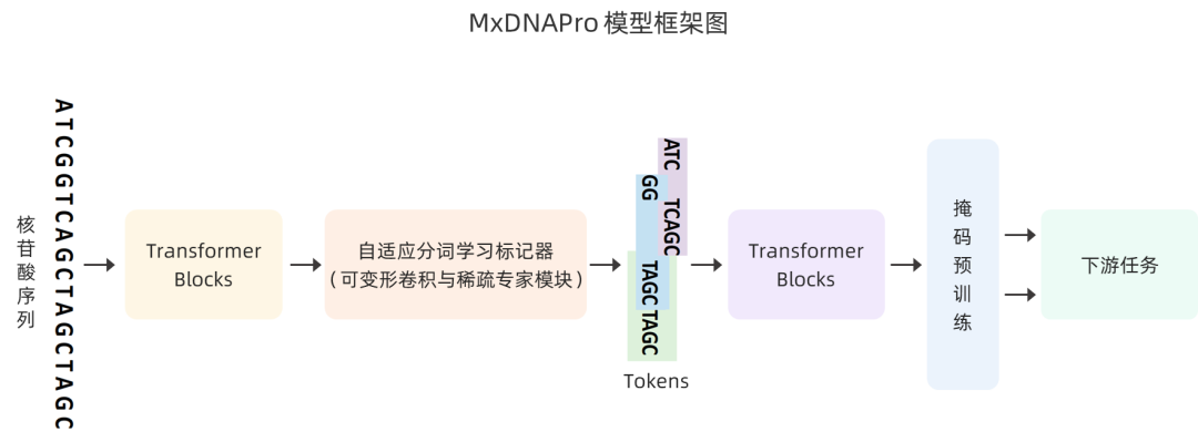MxDNAPro 模型首創(chuàng)自主學(xué)習(xí)劃分token策略,通過可變形卷積與稀疏專家模塊,讓模型自行識別生物學(xué)意義片段;并引入交叉注意力(Cross-Attention)機制,實現(xiàn)任意輸入/輸出長度的精準(zhǔn)對齊;同時基于八張?zhí)魽I加速卡的多卡并行訓(xùn)練和 FlashAttention 算子庫,提升訓(xùn)練吞吐量、縮短訓(xùn)練時間。