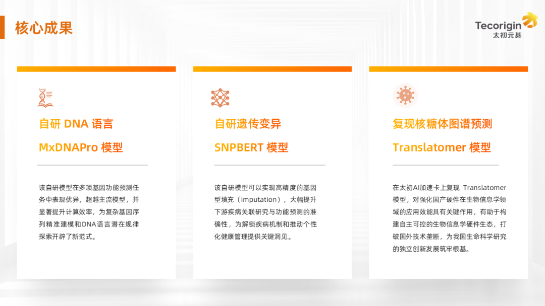 湖南大學(xué)生物學(xué)院計算基因組學(xué)課題組的羅宵教授帶領(lǐng)團隊與太初元碁開展深度合作,強化國產(chǎn)AI算力在生物信息學(xué)領(lǐng)域的應(yīng)用效能,推動構(gòu)建自主可控的生物信息學(xué)硬件生態(tài),打破國外技術(shù)壟斷,為我國生命科學(xué)研究的獨立創(chuàng)新發(fā)展筑牢根基: